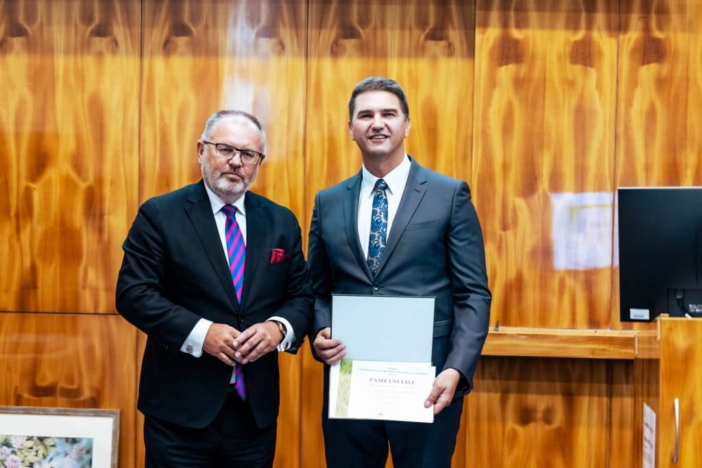 Slavnostní atmosféru podtrhl okamžik, kdy děkan fakulty prof. Ing. Patrik Burg, Ph.D., předal medaile a čestná uznání vybraným zaměstnancům, firmám a institucím. Tato ocenění byla výrazem uznání dlouholeté práce, spolupráce i podpory, bez které by fakulta nemohla dosahovat svých výsledků v oblasti výuky, vědy i praxe.